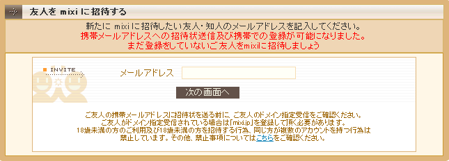 マイミクシィが1000人に達していなければ友人をmixiに招待することができます。