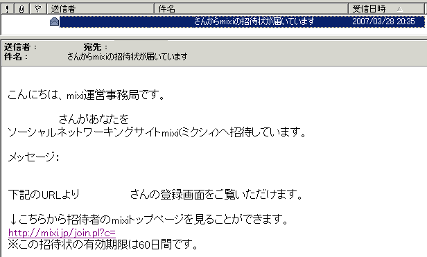 招待した友人は必ずマイミクシィになり、三ヶ月間はお互いにマイミクシィから外すことができません。